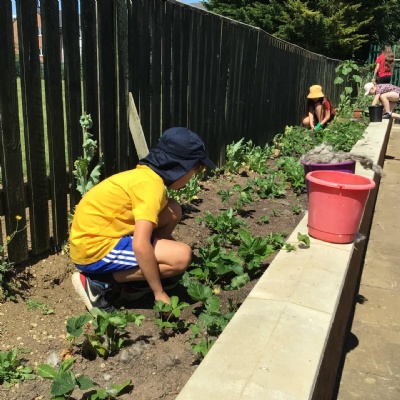 Well done to 5LF who braved the scorching hot weather to build on their gardening work they did earlier in the year. They were able to see their raspberries and blackberries starting to take root . They weeded the areas and have now planted broad bean .
