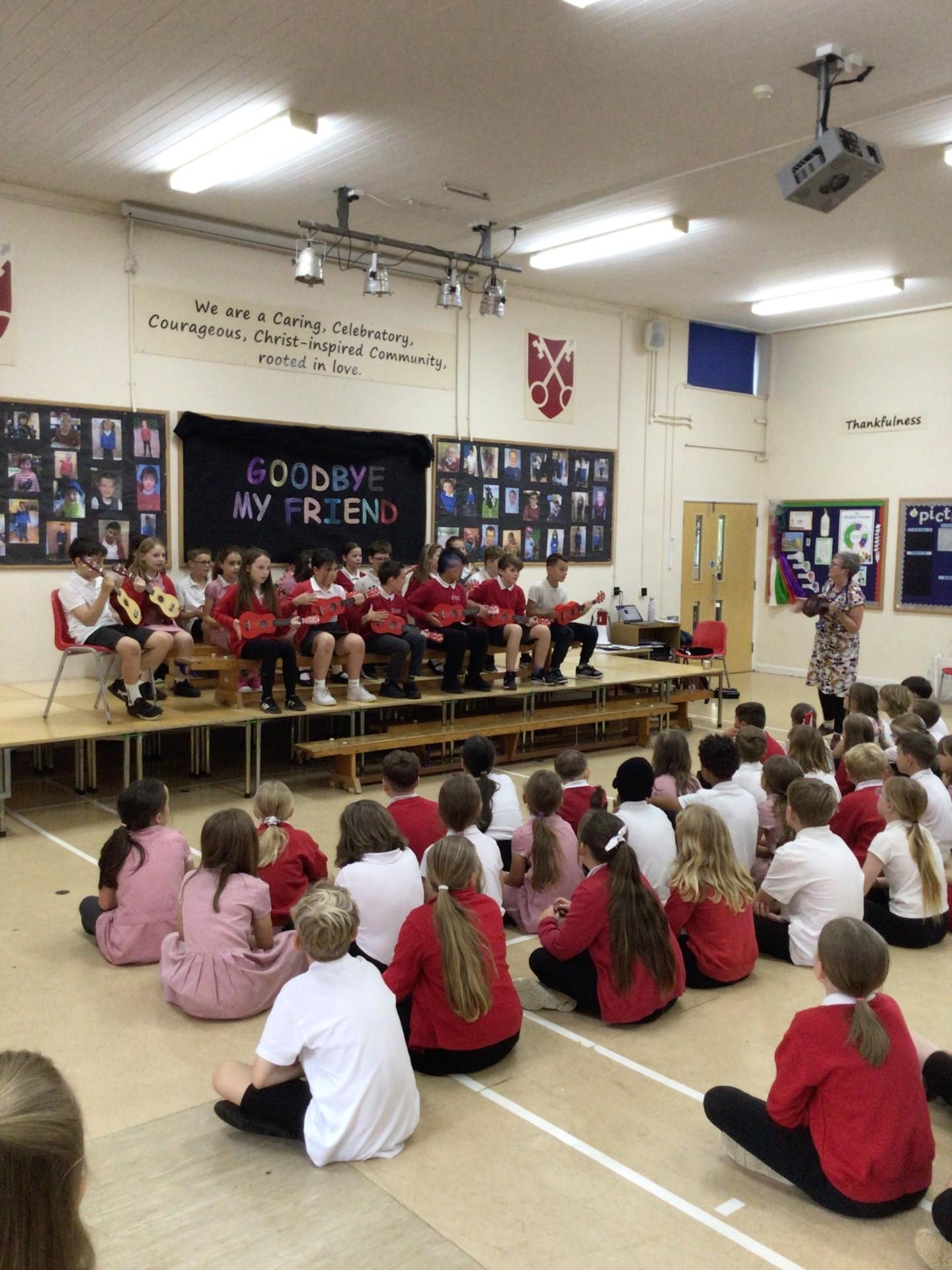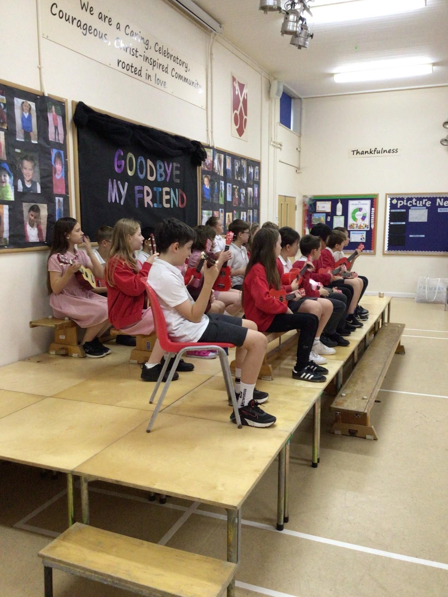 5LF performed their end of year Ukulele concert for years 3, 4 and 5 after 10 weeks of learning with Mrs Harries from NMPAT. It was a great success! Well done everybody!